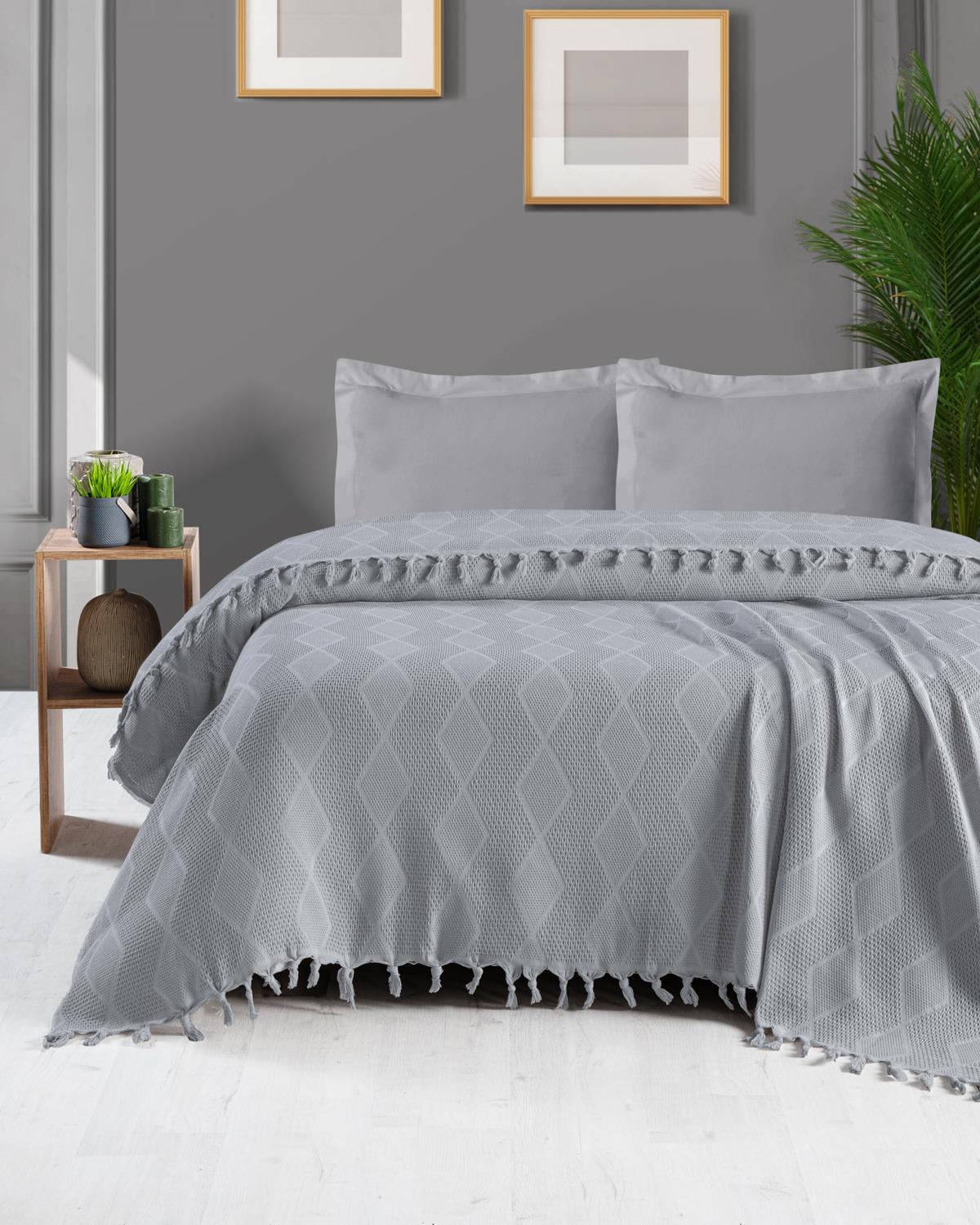 Çift Kişilik Gri Jakar Desen Pamuklu 220x240 cm / 4 Mevsim