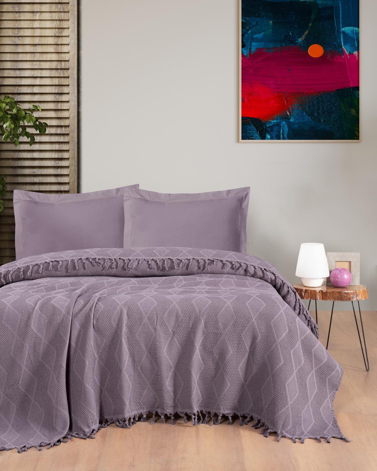 Çift Kişilik Mor Jakar Desen Pamuklu Pike/ 4 Mevsim