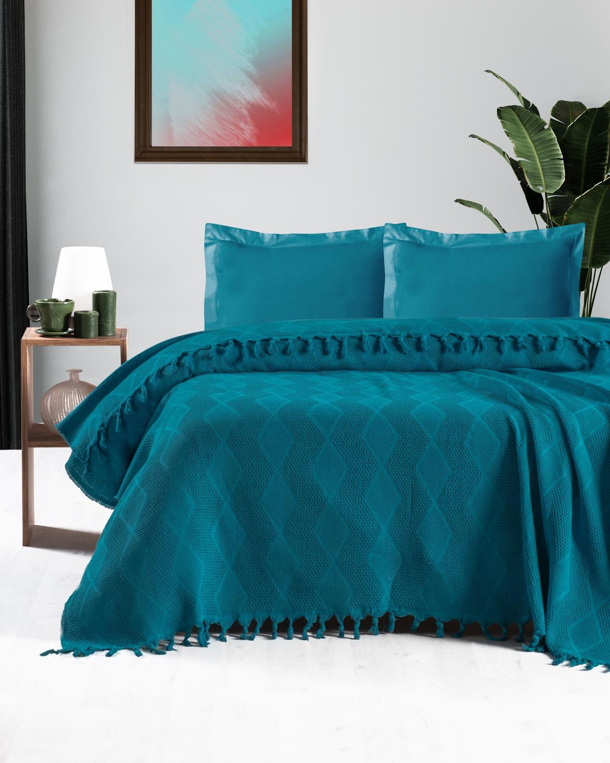 Çift Kişilik Petrol Jakar Desen Pamuklu Pike / 4 Mevsim
