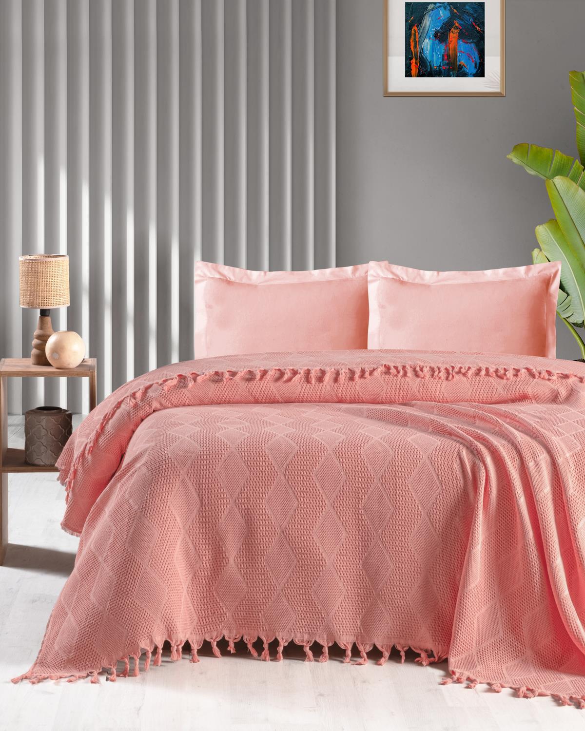 Çift Kişilik Somon Jakar Desen Pamuklu 220x240 cm / 4 Mevsim