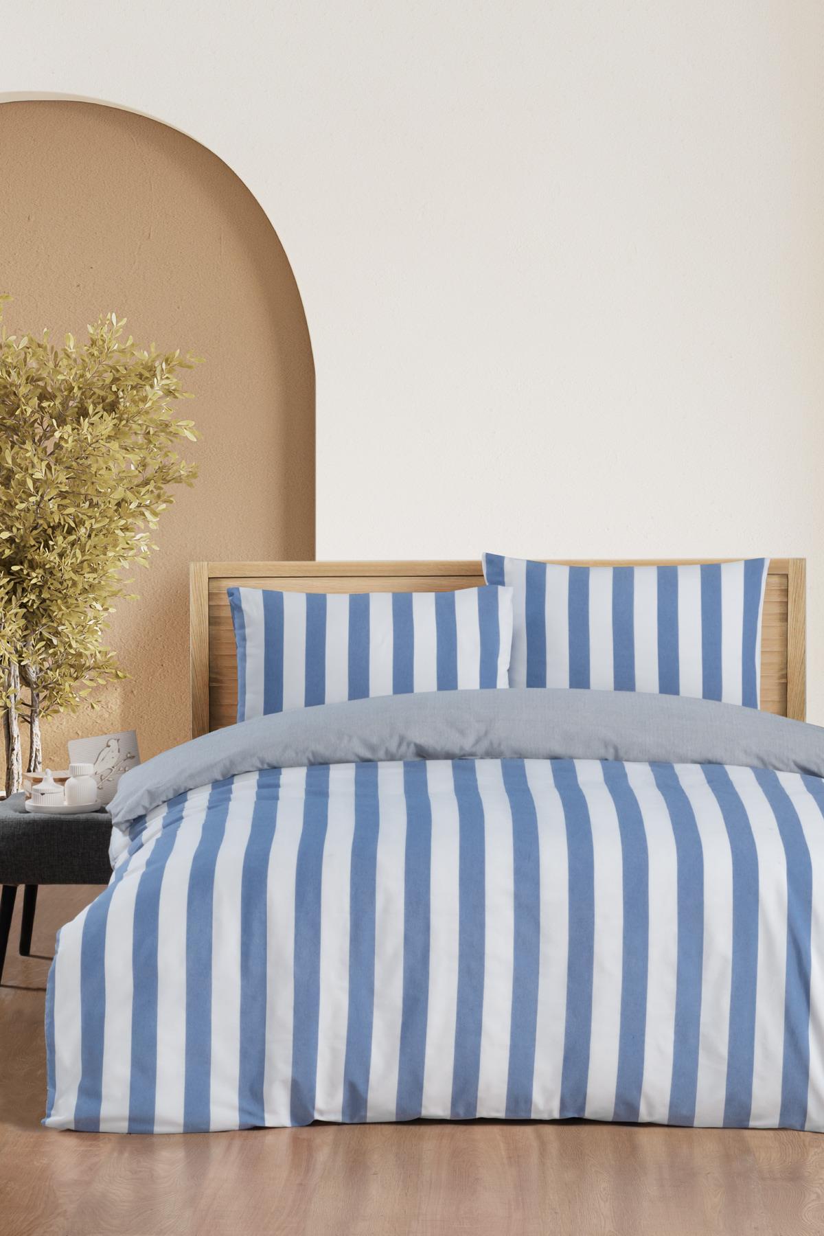 Heaven Lastikli Çarşaflı Nevresim Takımı Çift Kişilik Mavi Çizgi Desen