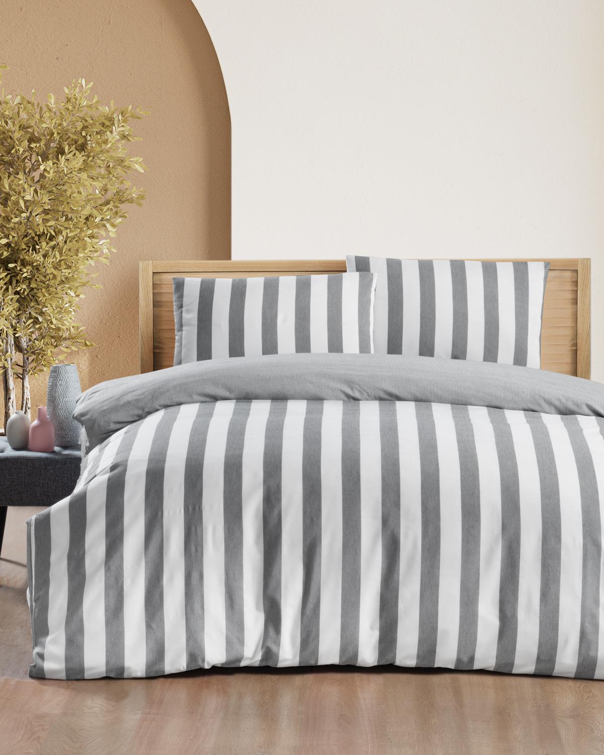 Heaven Lastikli Çarşaflı Nevresim Takımı Tek Kişilik Gri Çizgi Desen