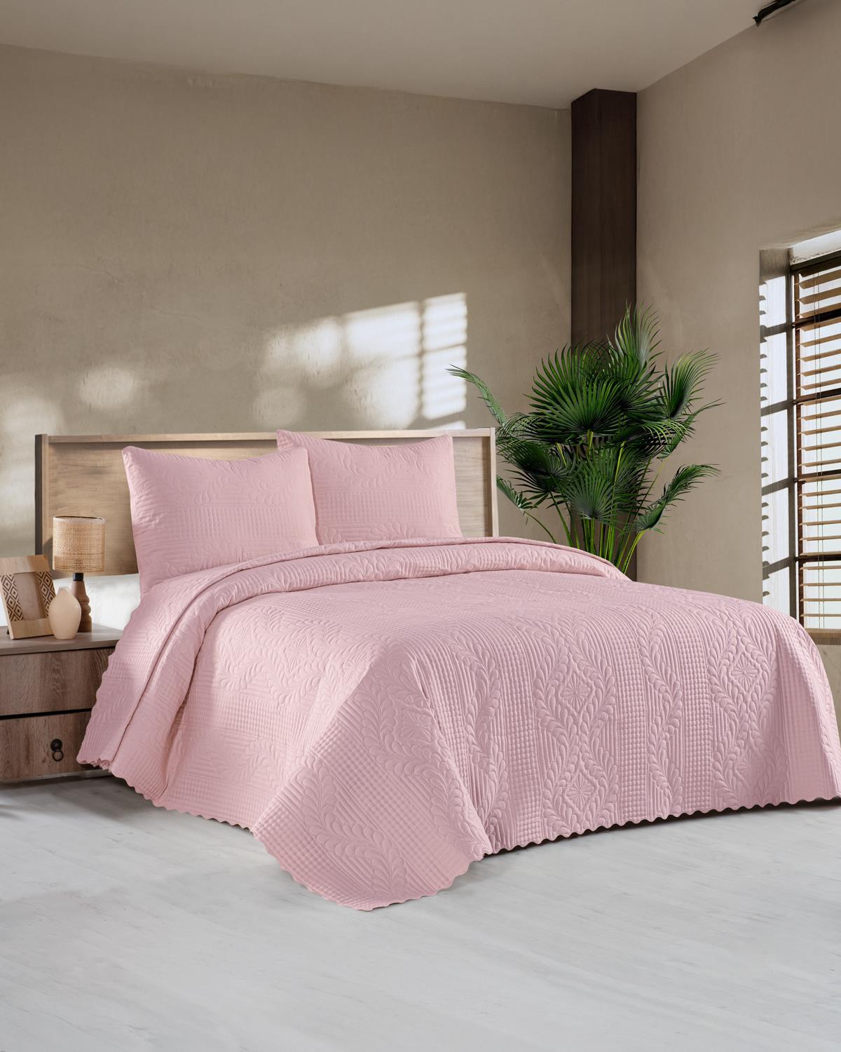 Vinessa Home Jumbo Soft Çift Taraflı Çift Kişilik Yatak Örtüsü 3 Parça / Pembe