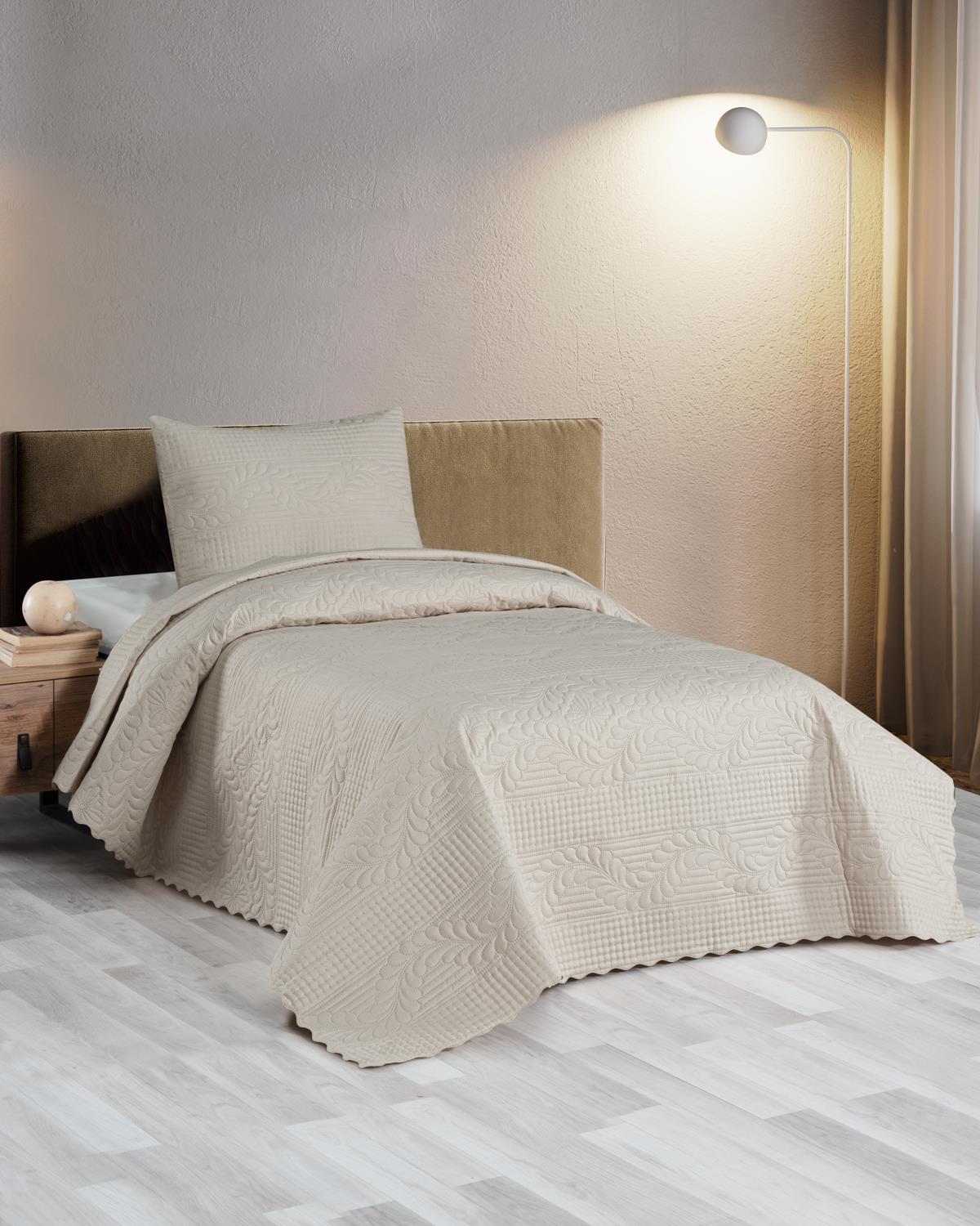 Vinessa Home Jumbo Soft Çift Taraflı Tek Kişilik Yatak Örtüsü 2 Parça / Bej