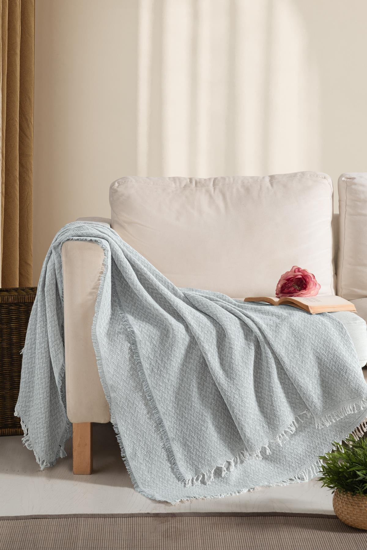 Pamuklu Çift Kişilik Saçaklı Koltuk Şalı Gri 175x210 cm