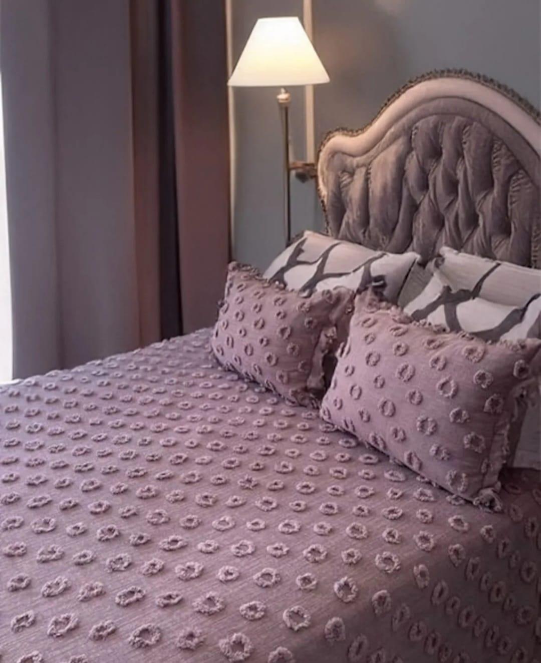 Vinessa Home 3 Parça Ponponlu Çift Kişilik Yatak Örtüsü 3 Parça / Mor
