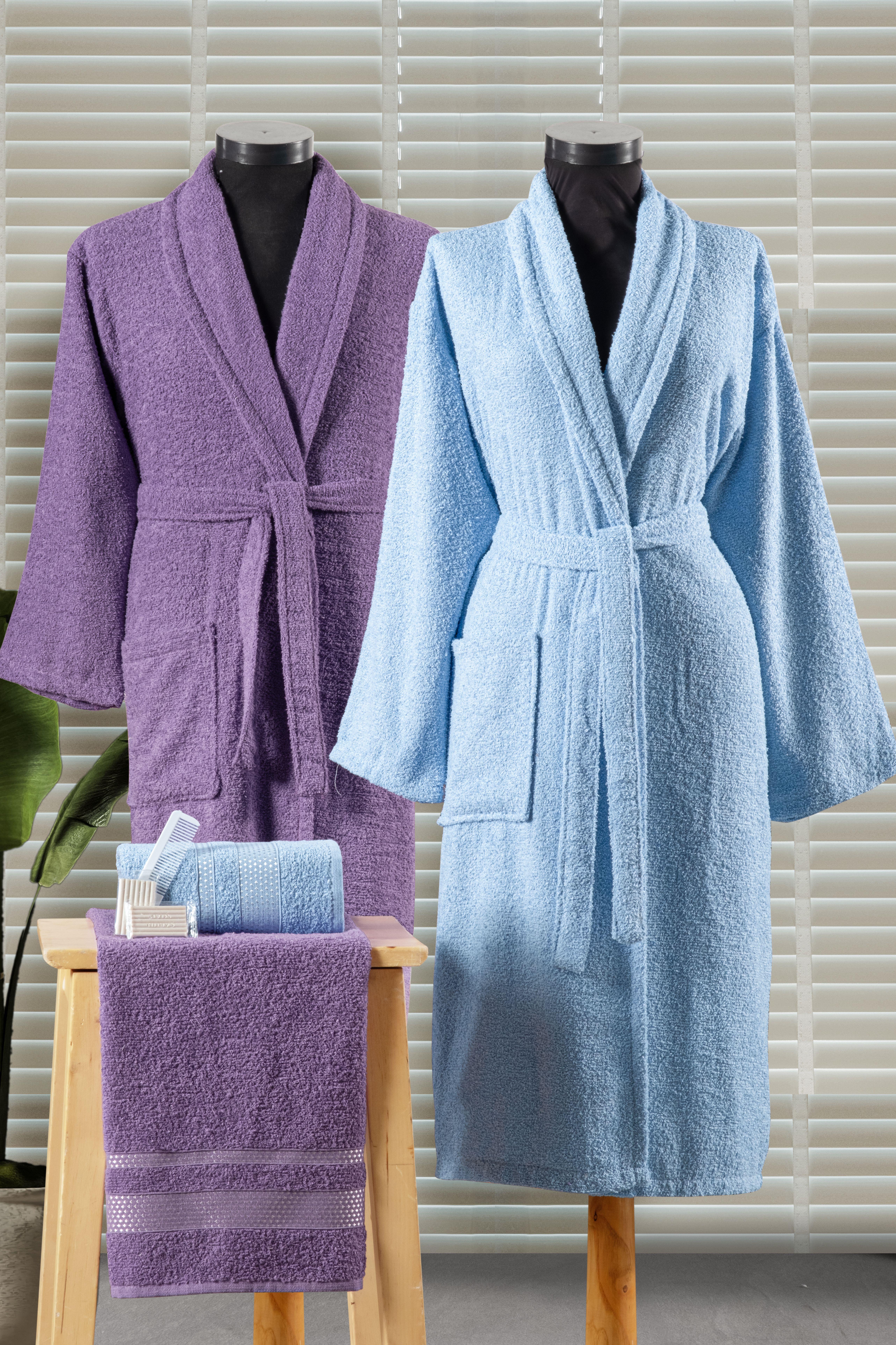Set İçeriği: 2 Adet Bornoz, 2 adet 50x90 El ve Yüz Havlusu, 2 Adet Sabun, 2 Adet Tarak