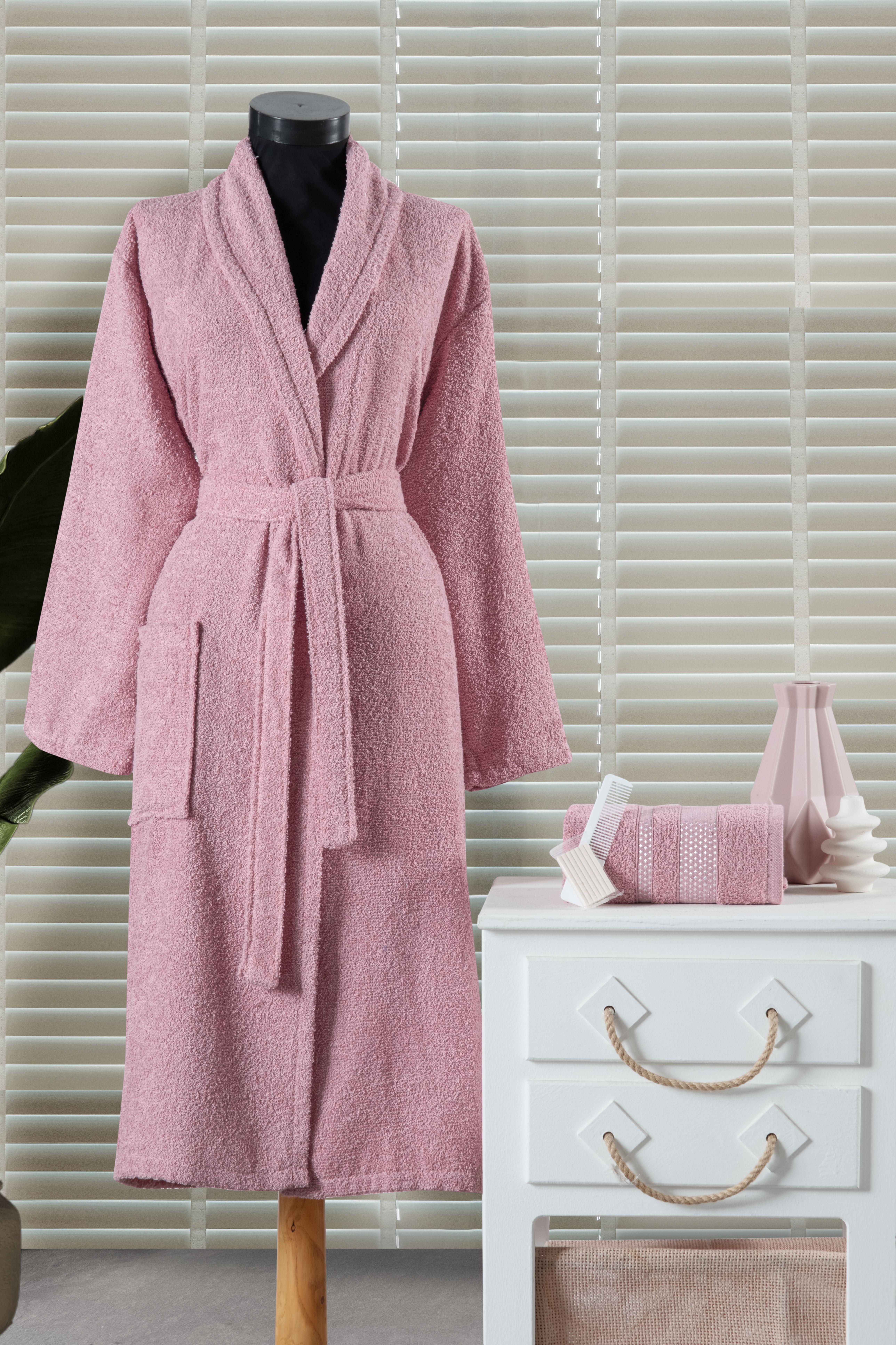Star Pamuklu Tek Kişilik Bornoz Seti / 4 Parça Gül Kurusu