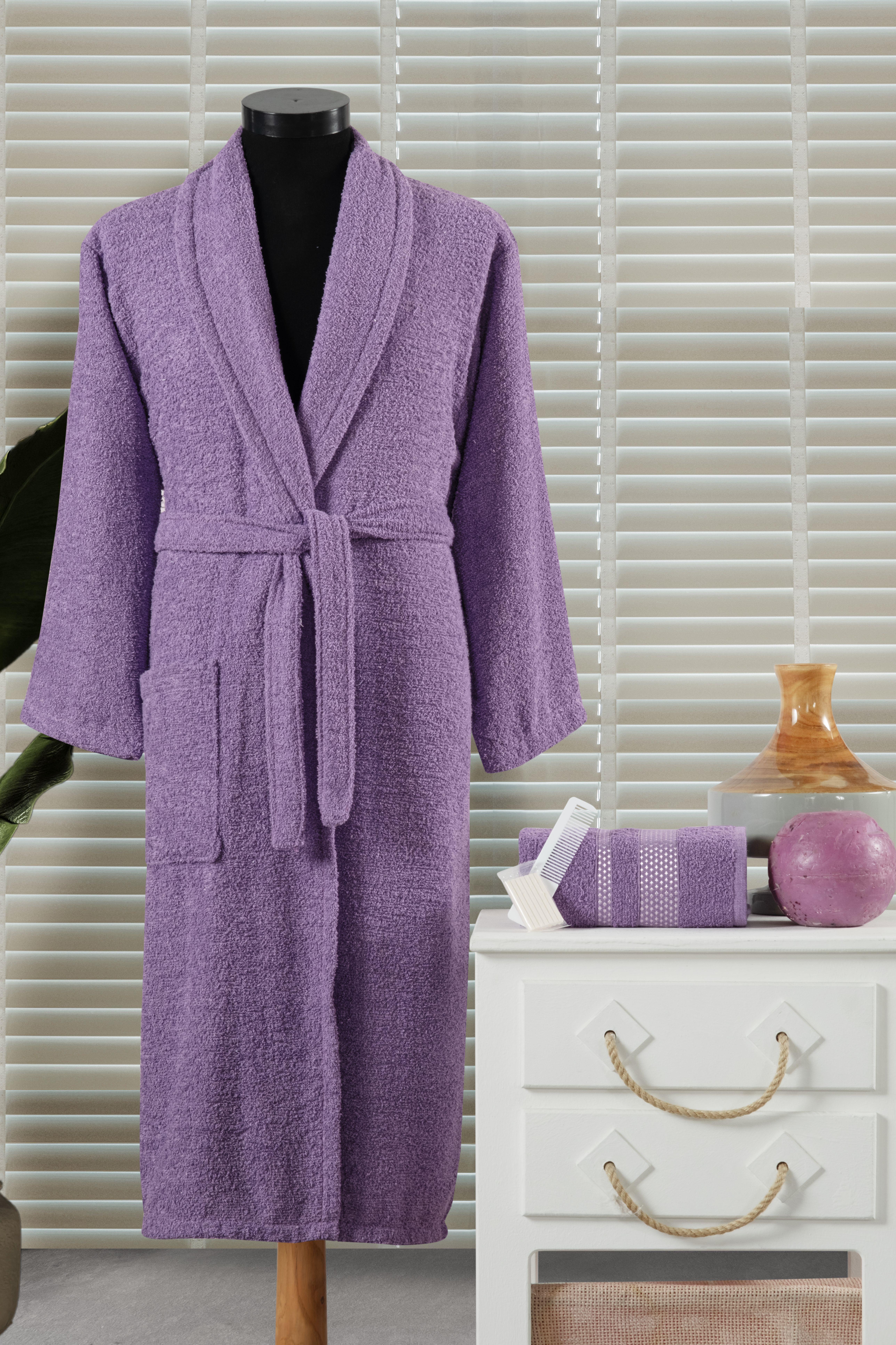 Star Pamuklu Tek Kişilik Bornoz Seti / 4 Parça Mor