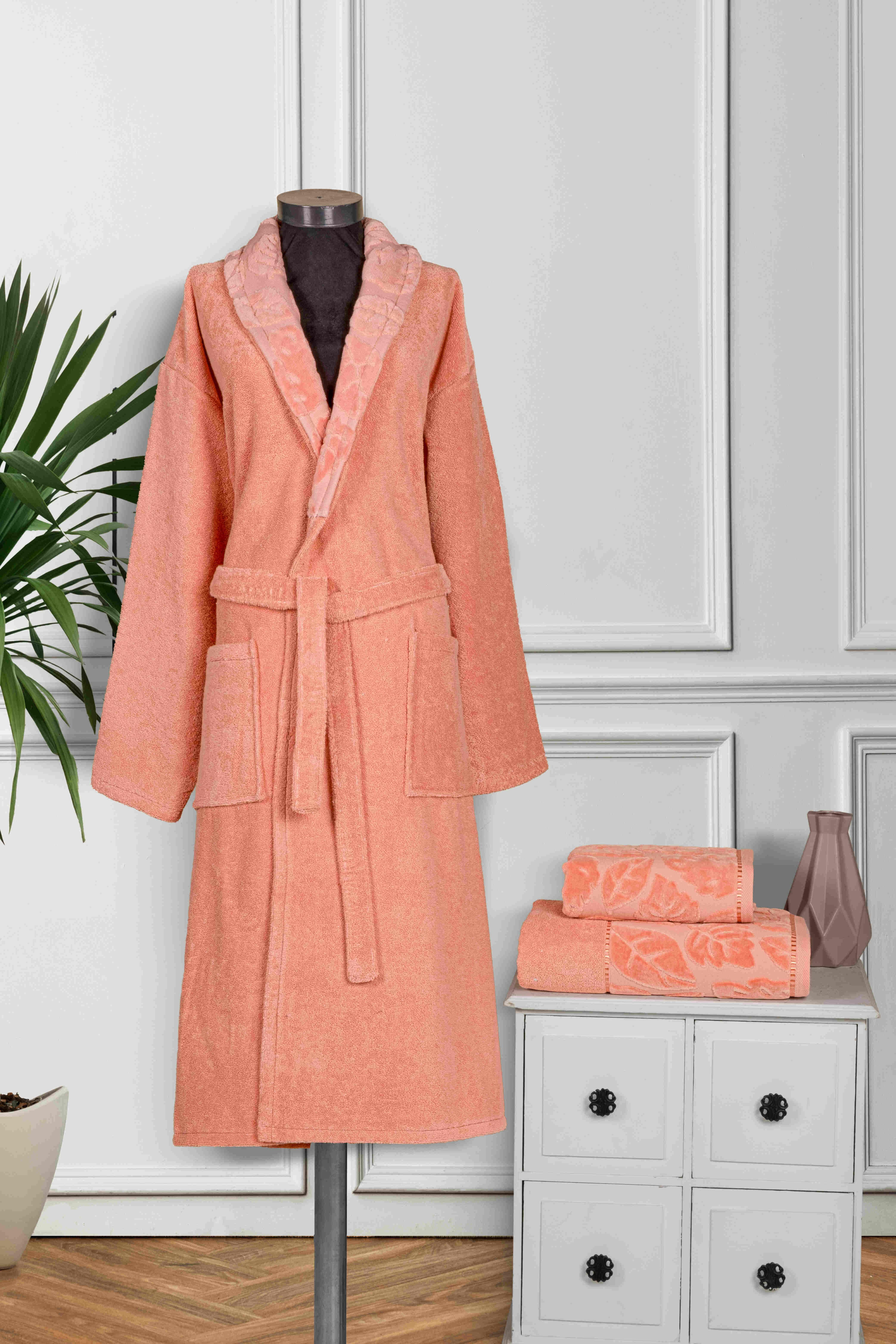 Set İçeriği: 1 Adet Bornoz, 1 Adet 70x140 Banyo Havlusu, 1 Adet 50x90 El ve Yüz Havlusu