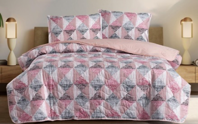 Çizgi Desen Aile Seti Gül Kurusu / Gri